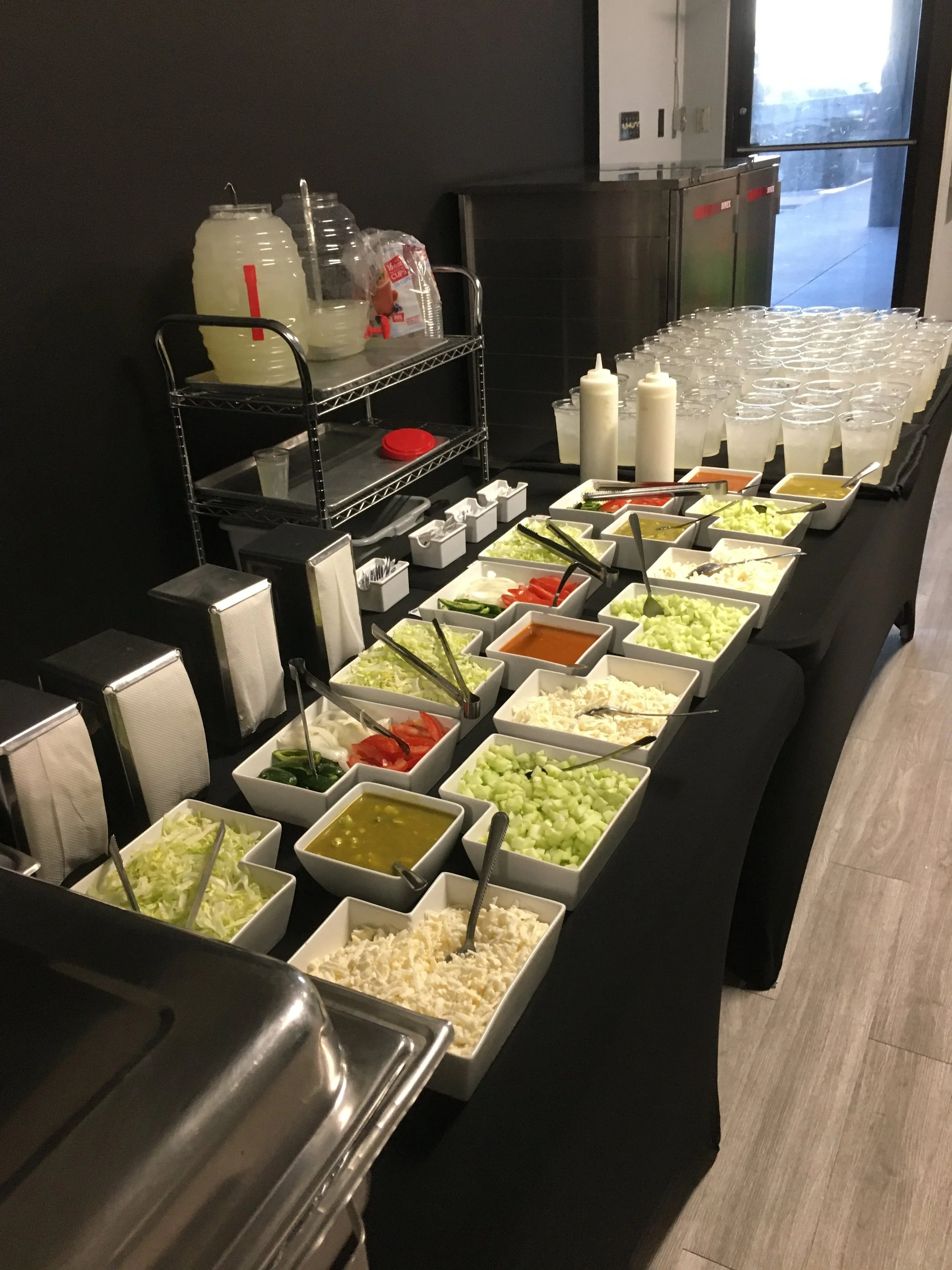 The Taco Service is served with disposable foam plates, disposable napkins and spoons.